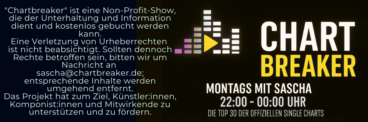 Eine Verletzung von Urheberrechten ist nicht beabsichtigt. Sollten dennoch Rechte betroffen sein, bitten wir um Nachricht an sascha@chartbreaker.de; entsprechende Inhalte werden umgehend entfernt.